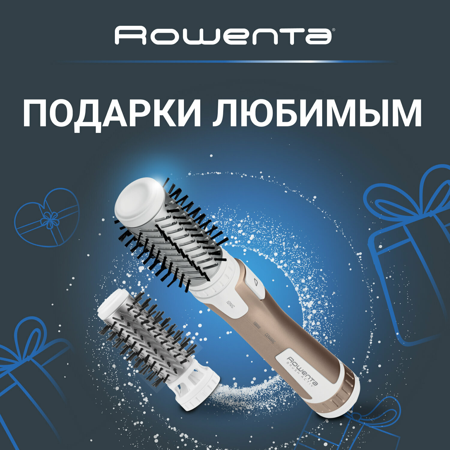 Вращающаяся фен-щетка для волос Rowenta Brush Activ Compact CF9520F0 с ионизацией и 2 насадками, 1000 Вт, белая/золотая интересное: