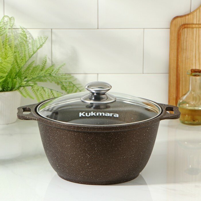 Кастрюля Kukmara 6 л, Мрамор кофейный, со стеклянной крышкой 26см, кмк62-1а
