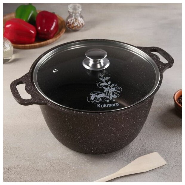 Кастрюля Kukmara 6 л, Мрамор кофейный, со стеклянной крышкой 26см, кмк62-1а