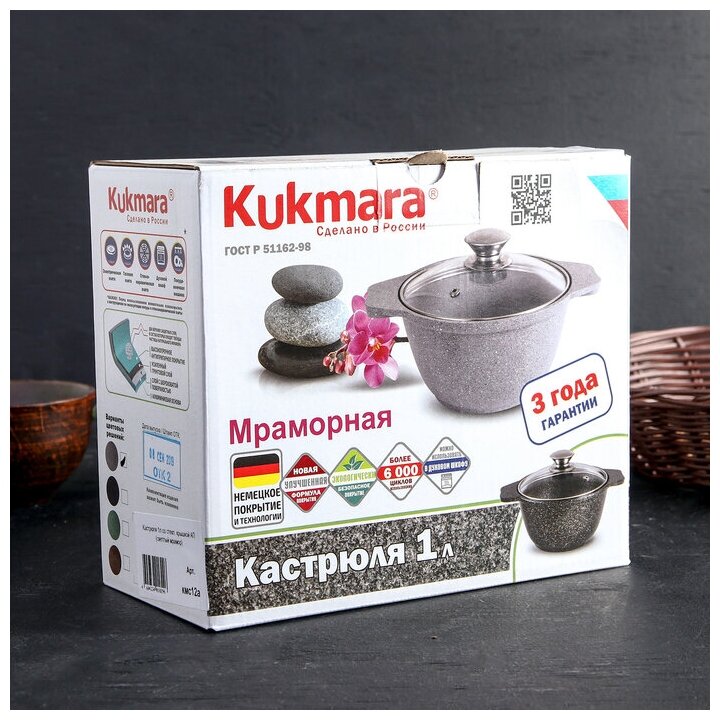 Кастрюля 6 л KUKMARA кмт62-1а, алюминий, темный мрамор
