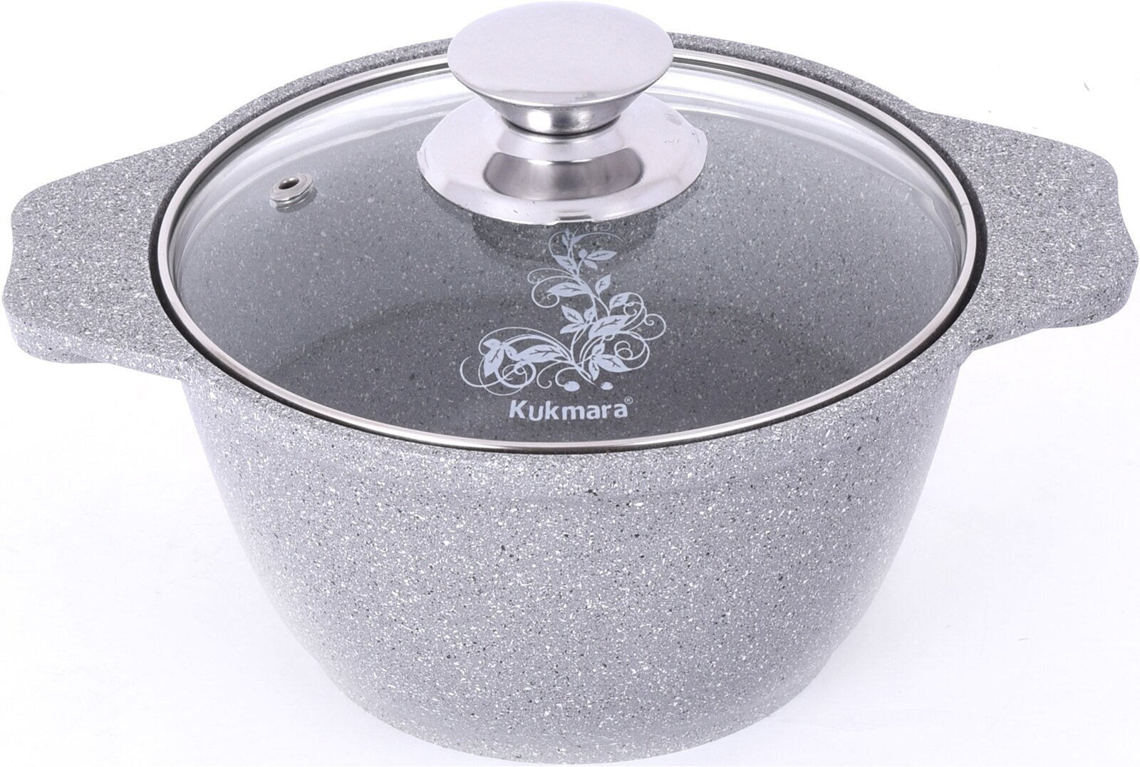 Кукмор кмс42а Кастрюля 4,0л со стеклянной крышкой, с антипригарным покрытием (светлый мрамор)