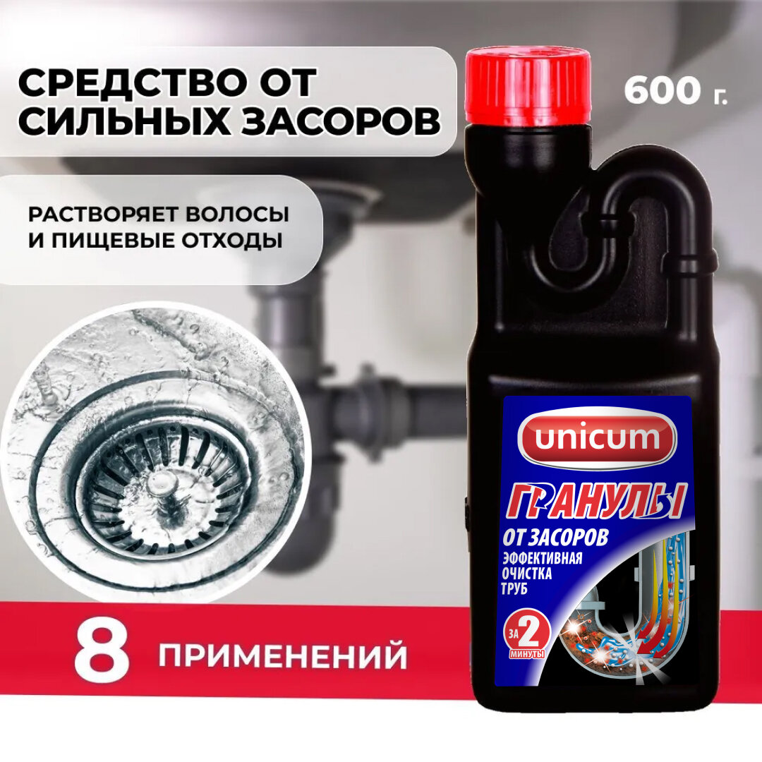 СохранитьUNICUM Гранулированное ср-во д/удаления засоров торнадо, 600г rus интересное: