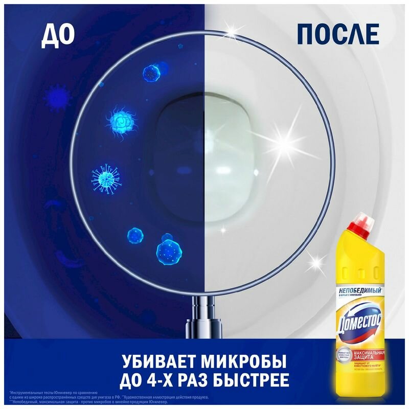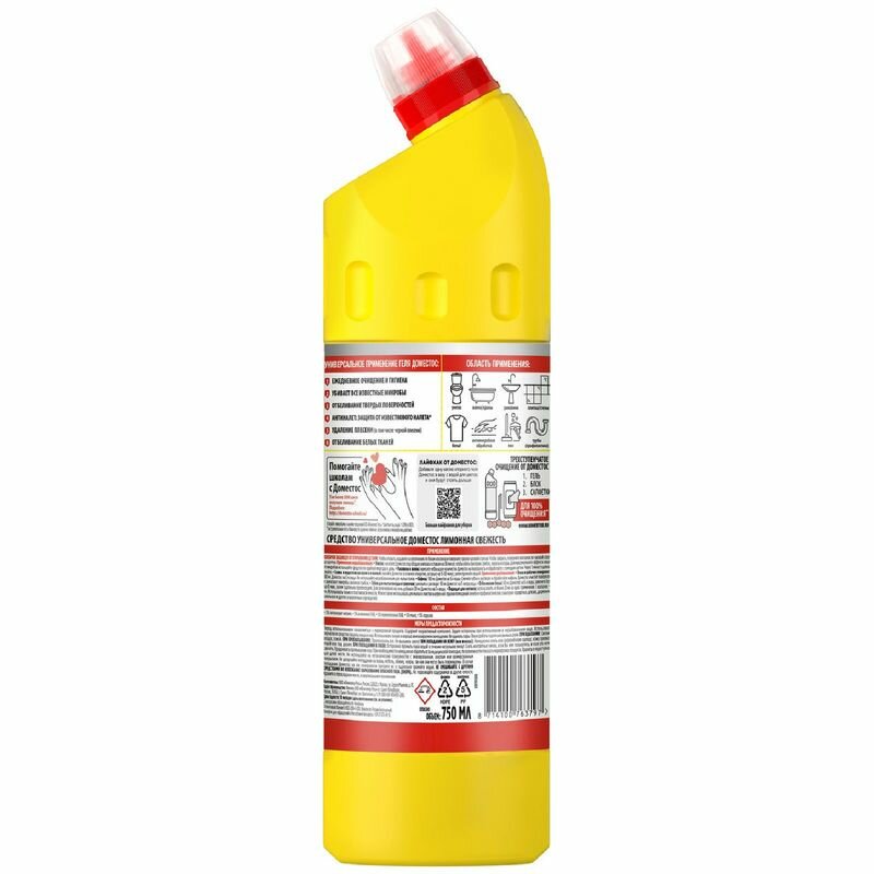 Domestos Чистящие средство универсальное Гель для ванной и туалета Лимонная свежесть 750 мл. 0.75 л