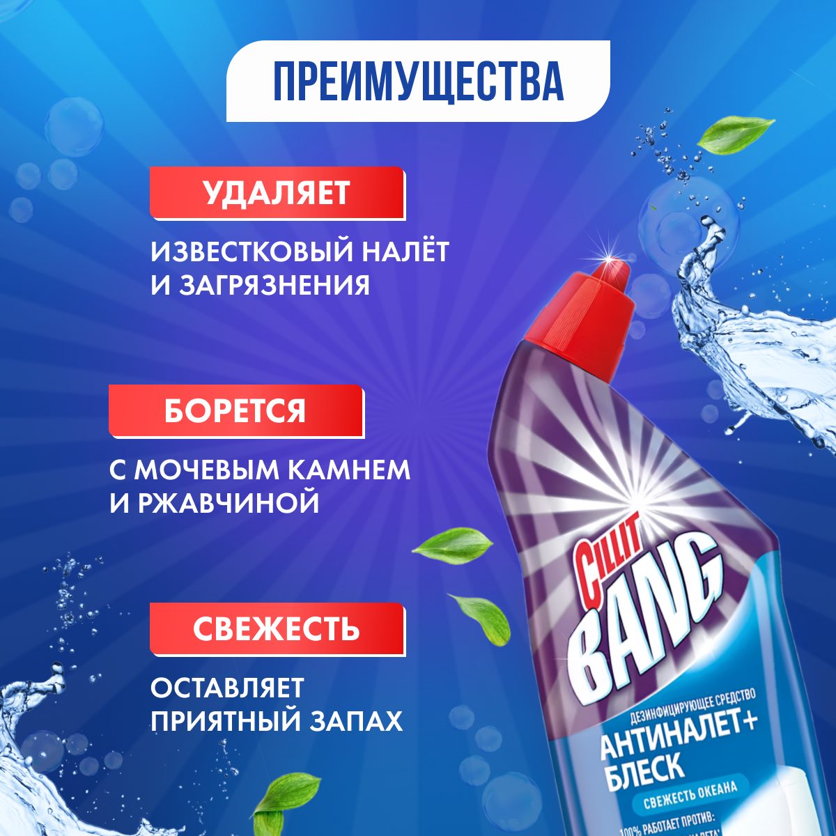 Средство для сантехники Cillit Bang "Антиналет+блеск. Свежесть океана", 750мл (8149771)