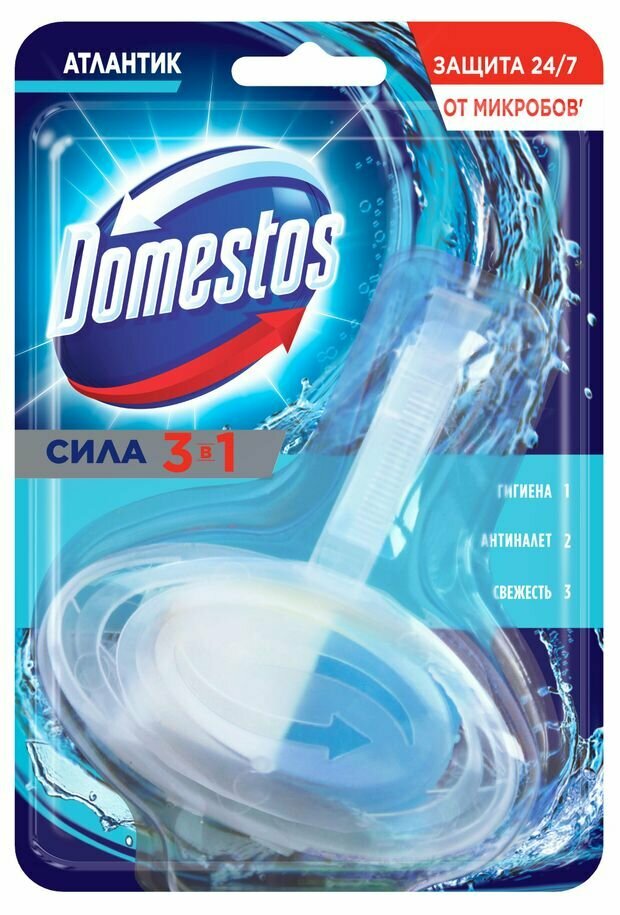 Domestos Атлантик 3 в 1, гигиенический блок для очищения унитаза, против запахов и грязи, 40 гр