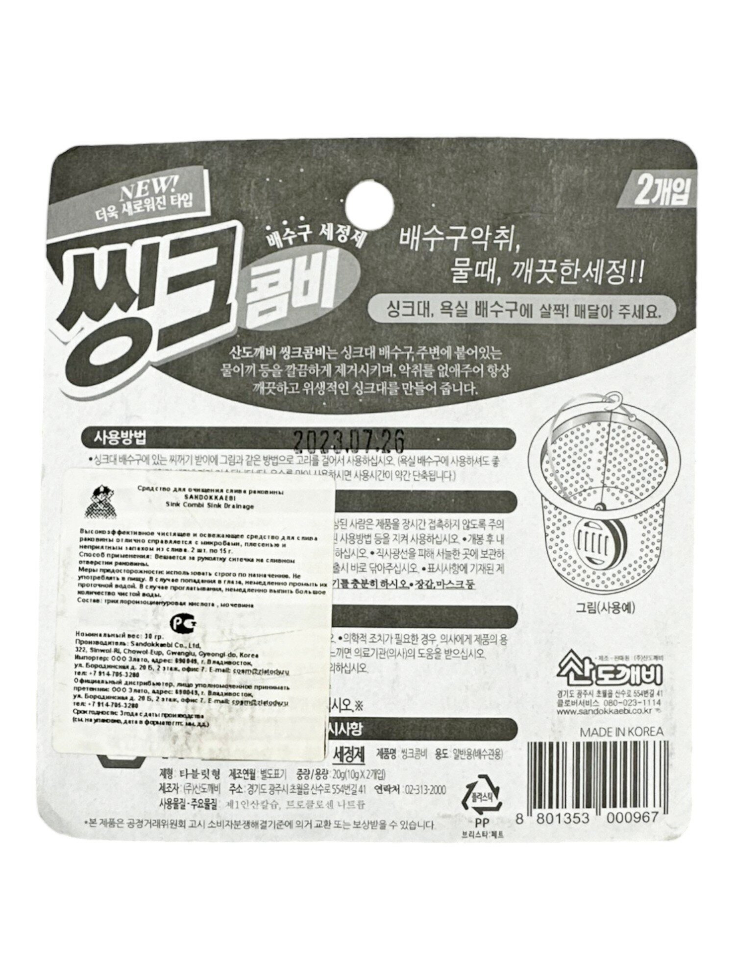 Купить SANDOKKAEBI Очиститель для слива раковин Синк Комби (для кухни), 10 г х 2 таблетки
