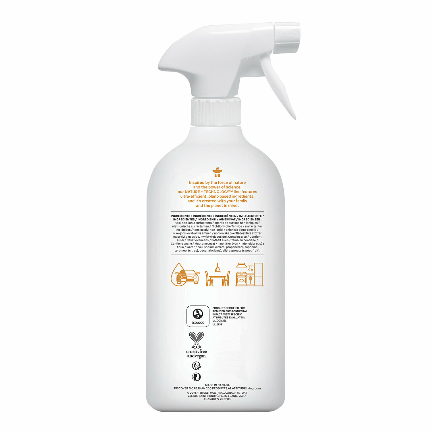 ATTITUDE Экологичный Очиститель поверхностей универсальный 800мл