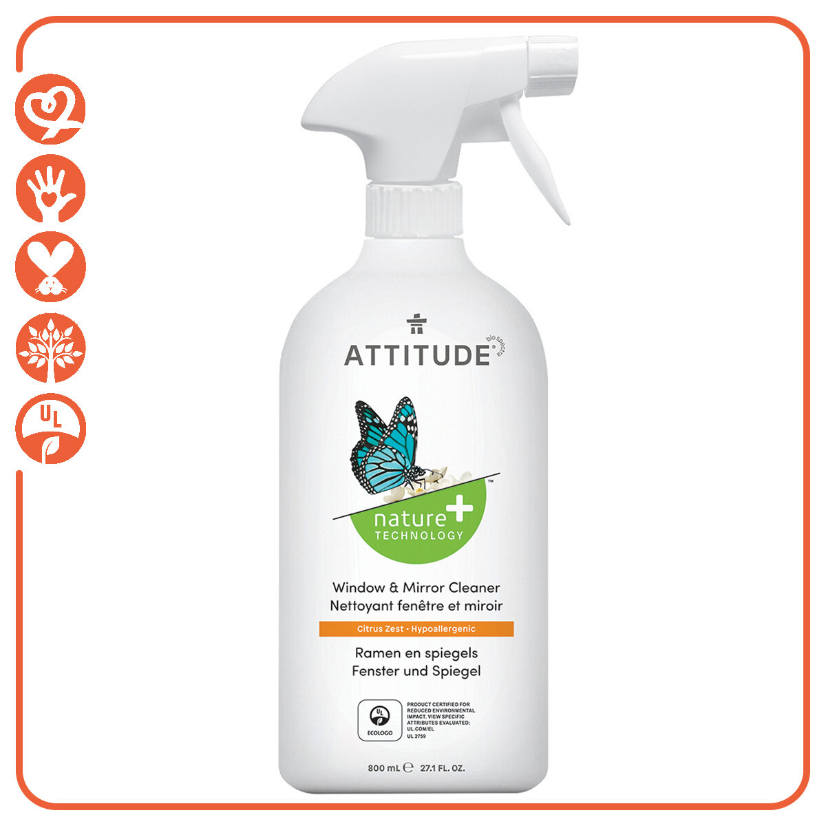 Купить ATTITUDE Экологичный Очиститель для стёкол и зеркал 800мл