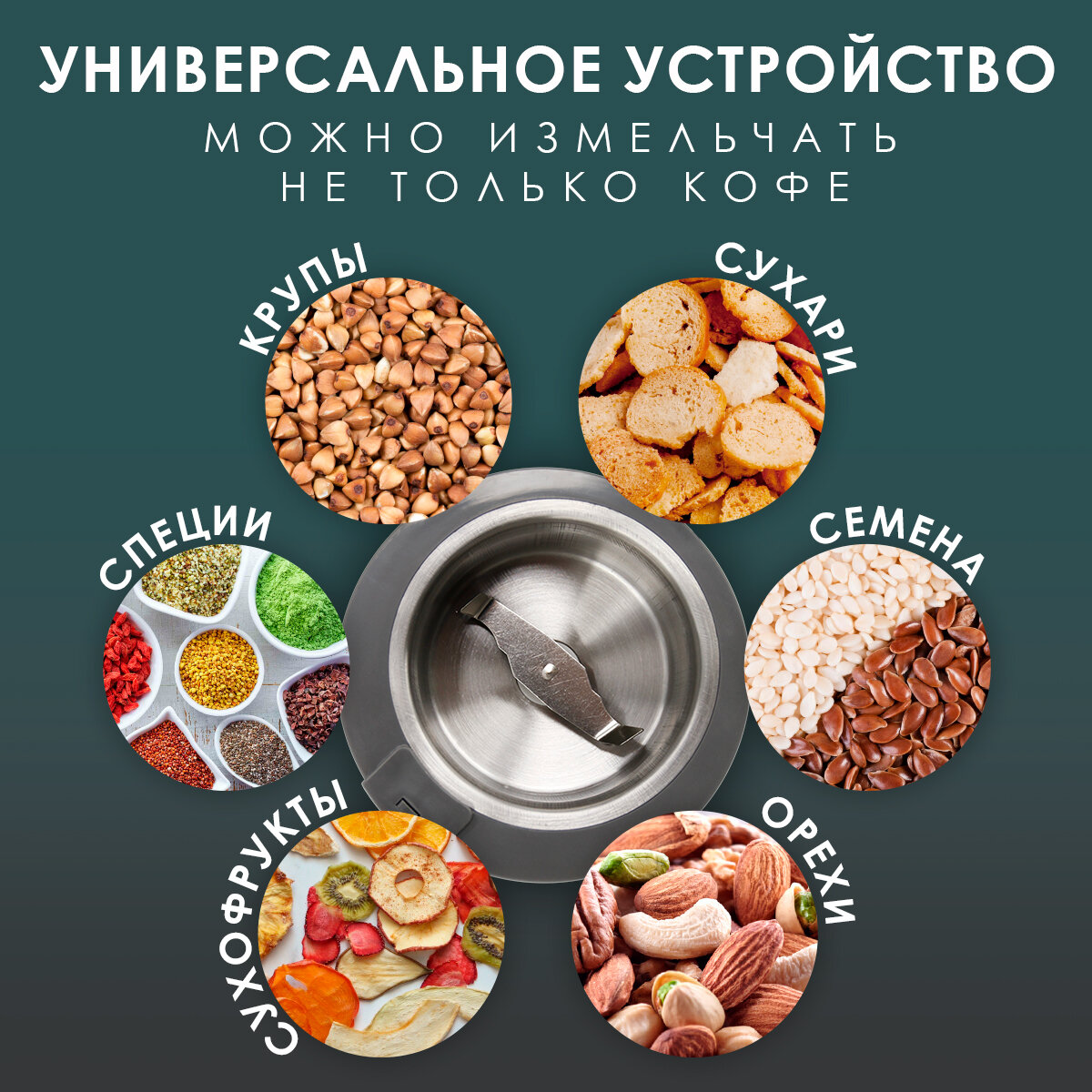 Измельчитель, кофемолка электрическая с емкостью.