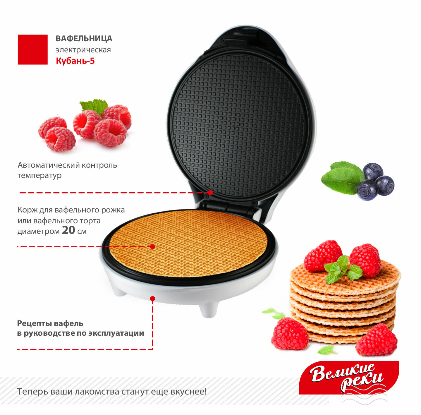 СохранитьВафельница Великие Реки Кубань-5 1200 Вт, конус для вафельного рожка, цвет белый интересное: