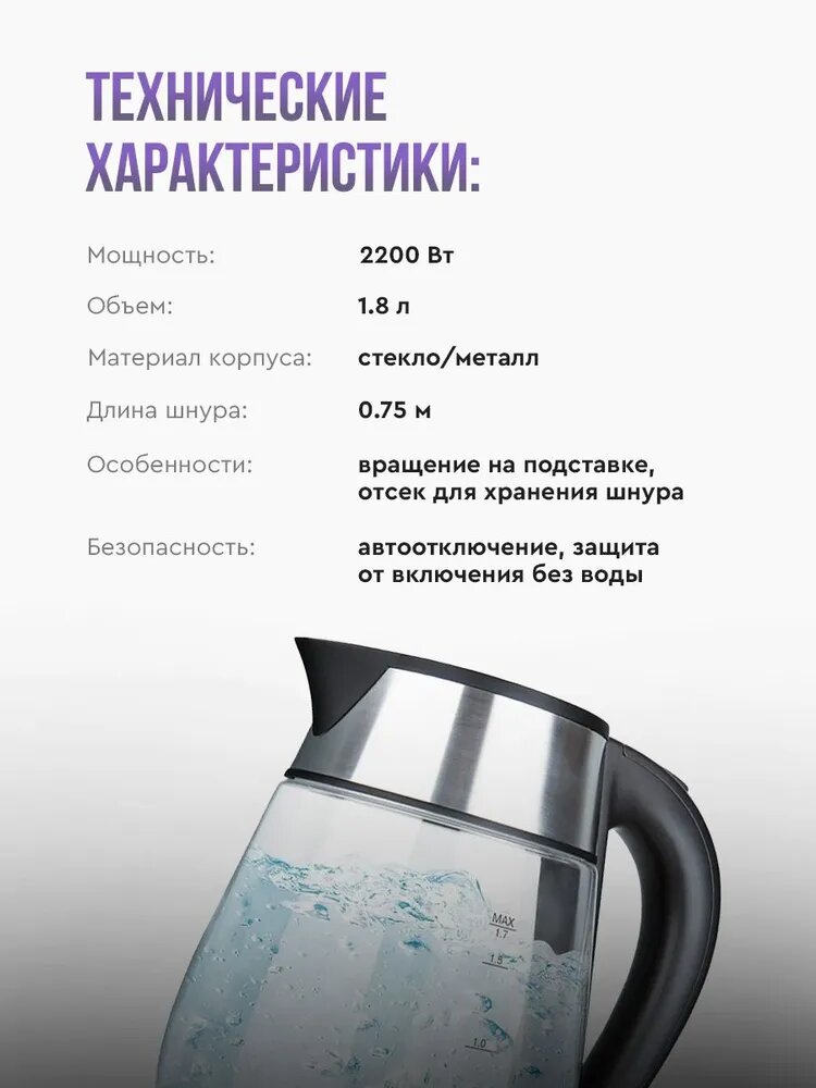 Чайник электрический Vitek VT-7037 прозрачный/черный, стекло/металл/пластик интересное: