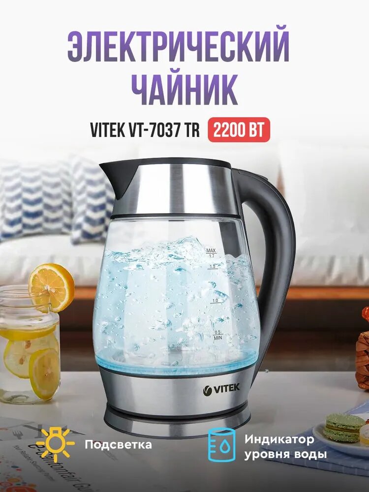 Купить Чайник электрический Vitek VT-7037 прозрачный/черный, стекло/металл/пластик