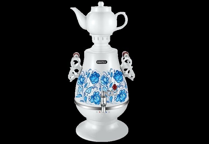 Купить Самовар электрический CENTEK СТ-0091A 4 л, 2100 Вт, белый/голубой