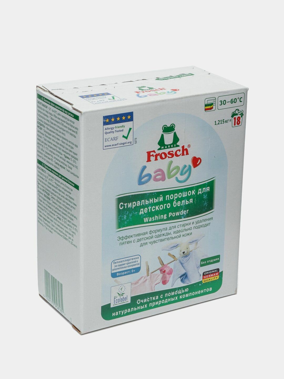 Купить Стиральный порошок Frosch для детского белья, 1.215 кг, 1.22 л, без отдушки, природа и свежесть, для детского белья, для белых и светлых тканей