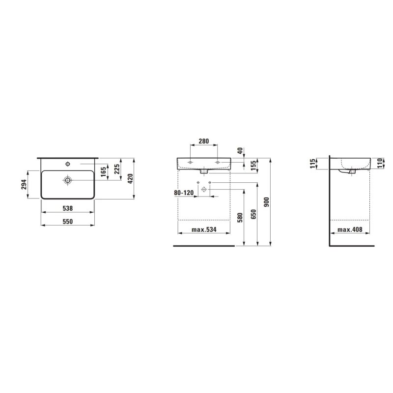 Laufen VAL Раковина 550х420мм с 1 отв. под смеситель, цвет: белый