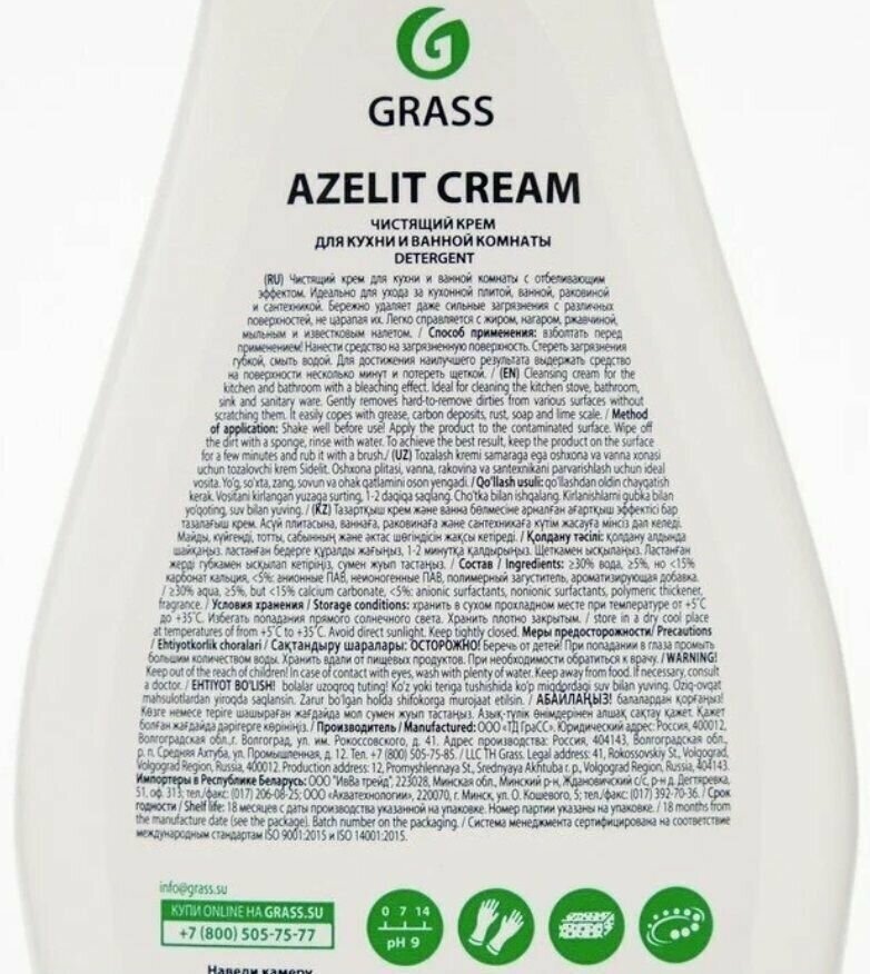 Купить Крем чистящий универсальный для ванной и кухни 500мл GRASS AZELIT, отбеливающий, ш/к 06060