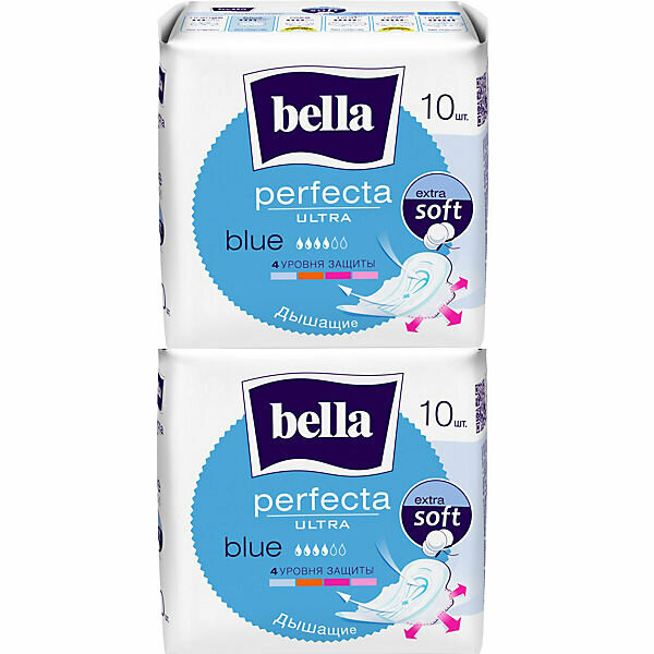 Bella прокладки Perfecta ultra blue, 4 капли, 10 шт/уп * 2уп