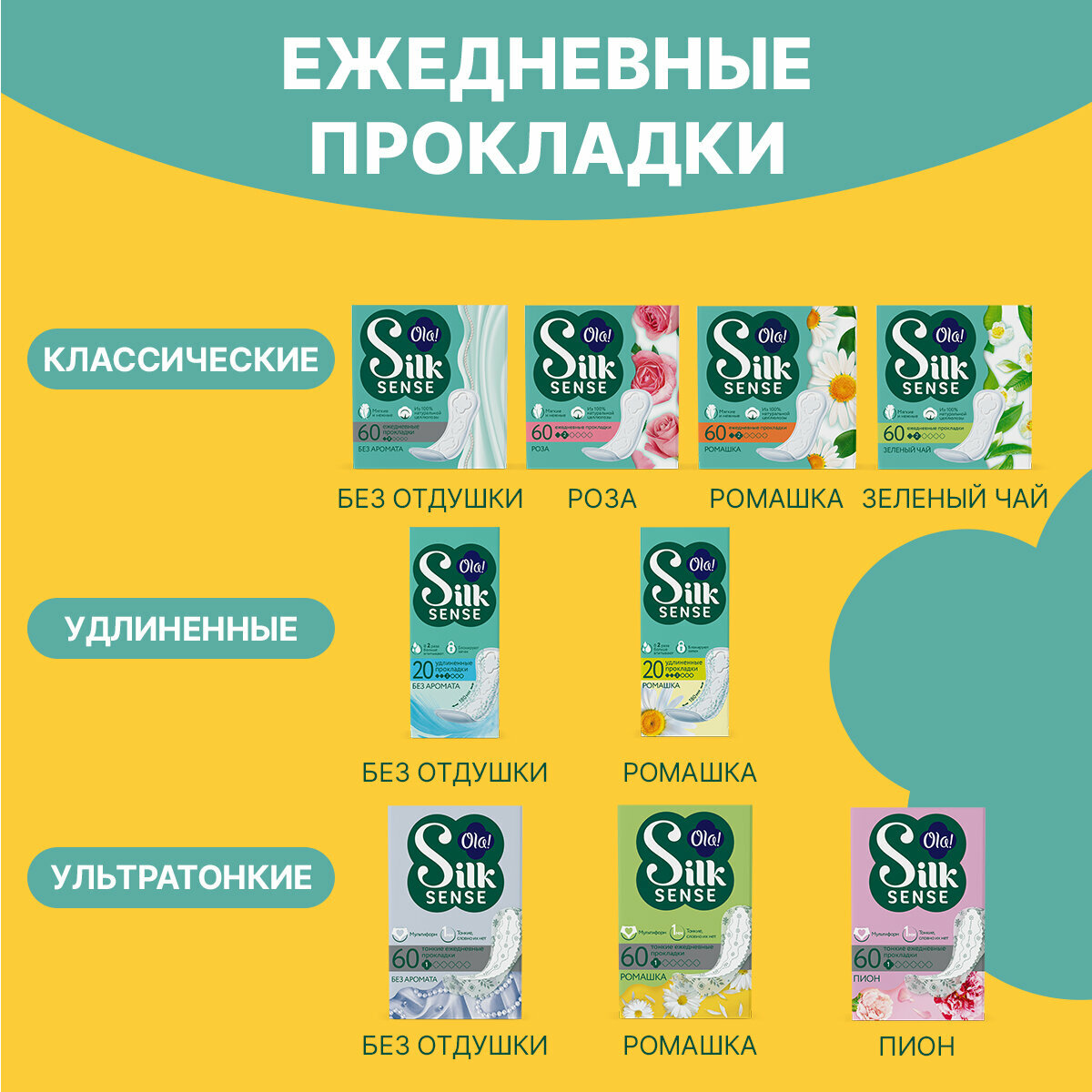 Ola Прокладки ежедневные Silk Sense Daily, 60 шт/уп