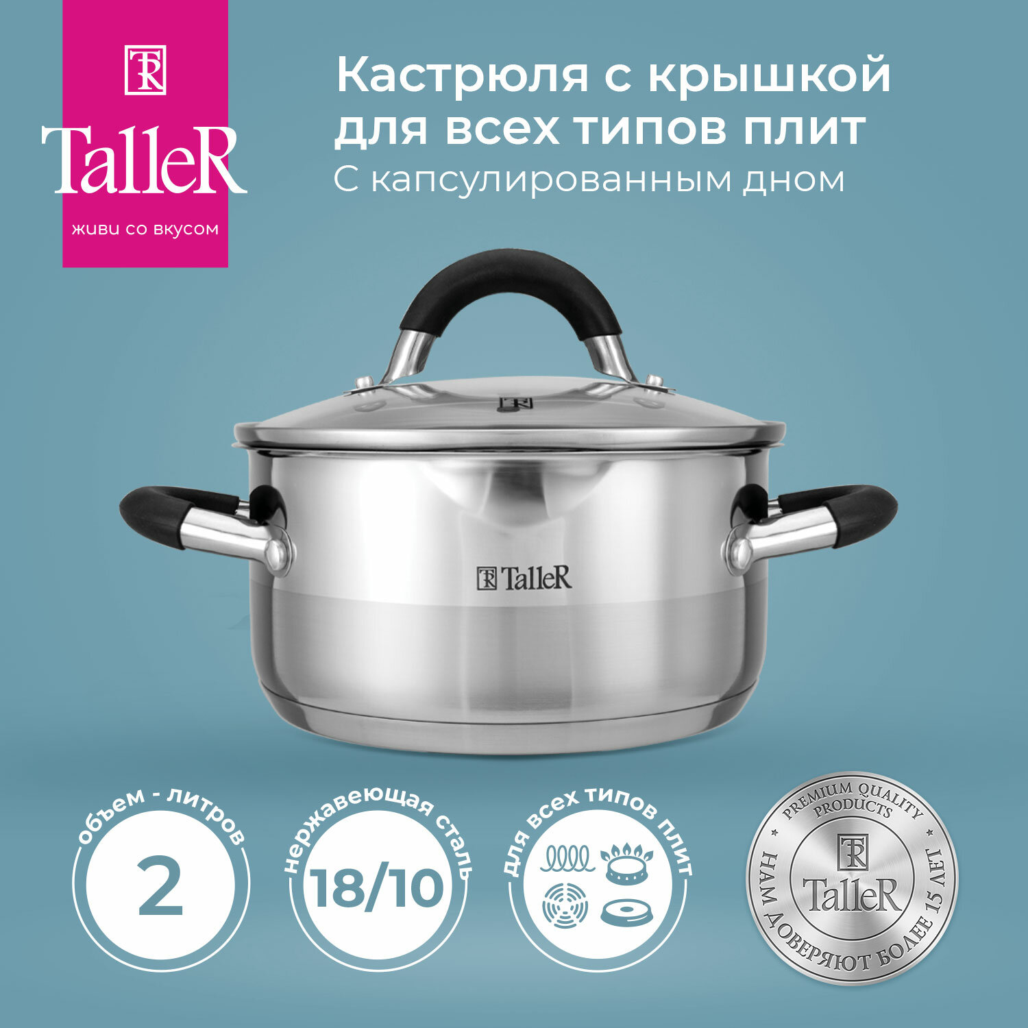Сохранитькастрюля TALLER Телфорд 2л 18см нерж.сталь стеклянная крышка индукция интересное: