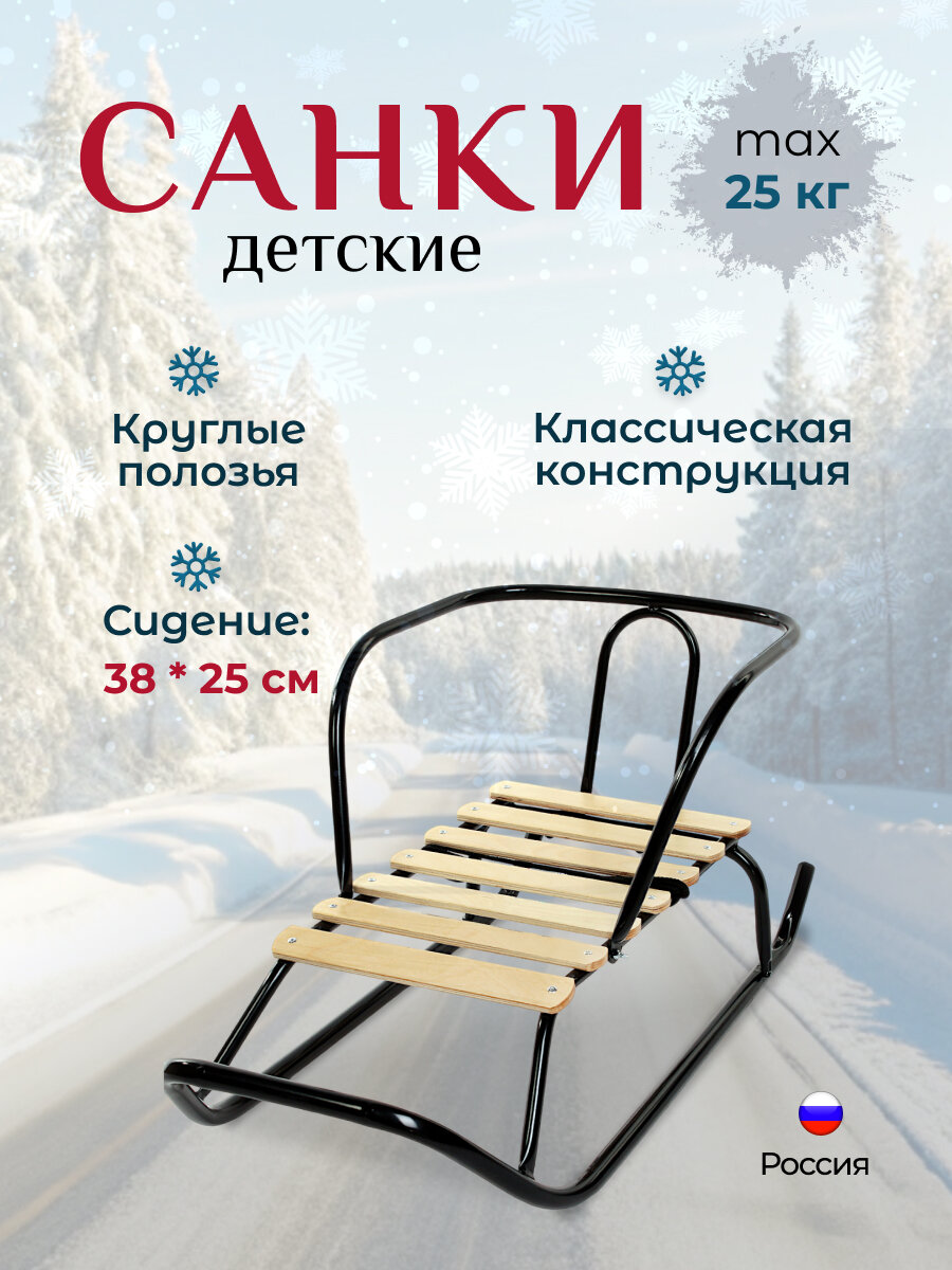 Игрушка. Санки детские НИКА Ветерок В1/Ч, черный, (без ручки, спинка-простая)