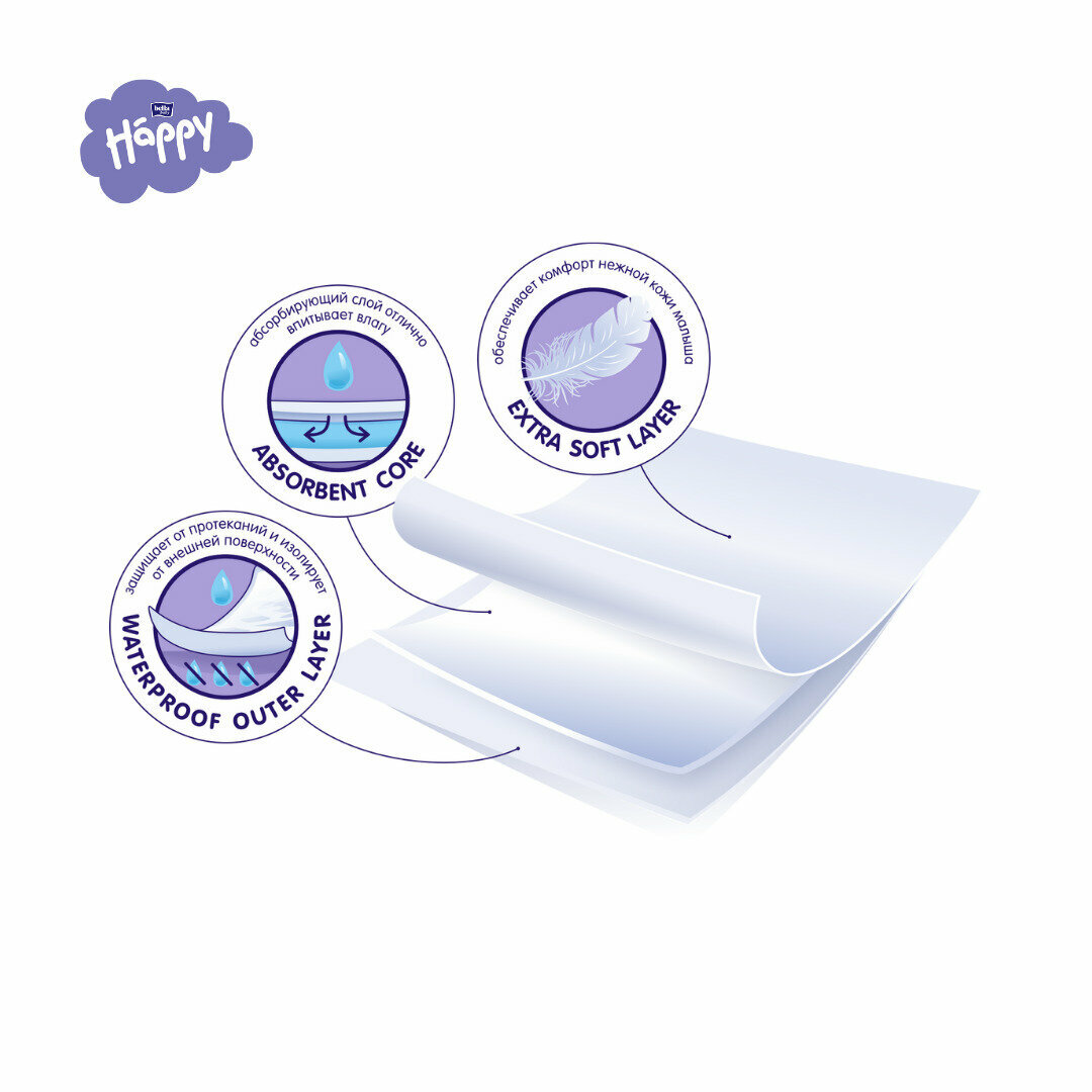 bella baby Happy Одноразовые пелёнки для детей "bella baby Happy" 60 x 60 см, 30 шт./уп.