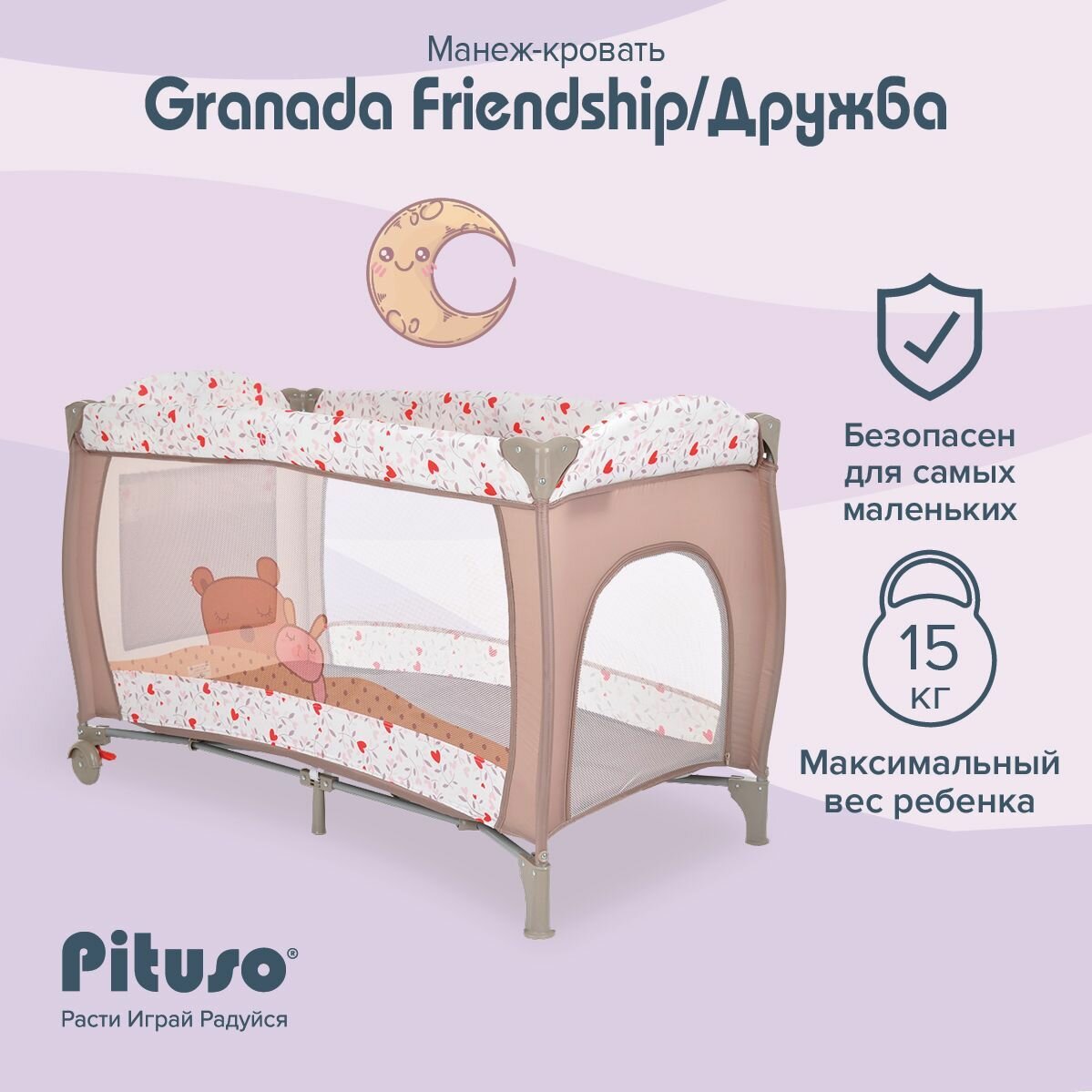 Детский манеж-кровать Pituso Granada Дружба P612 FSH для новорожденного, двухуровневый, складная кроватка с рождения