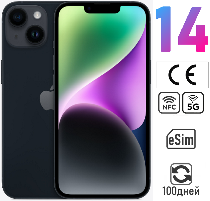 Смартфон Apple iPhone 14 128ГБ Midnight (Темная ночь) (A2649) eSim