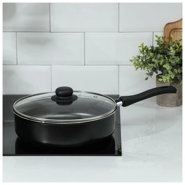 Сковорода Consul, d=20 см, стеклянная крышка, пластиковая ручка, антипригарное покрытие, цвет чёрный