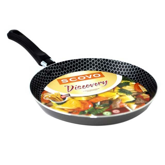 SCOVO Сковорода блинная Discovery, d=22 см, пластиковая ручка, антипригарное покрытие, цвет серый