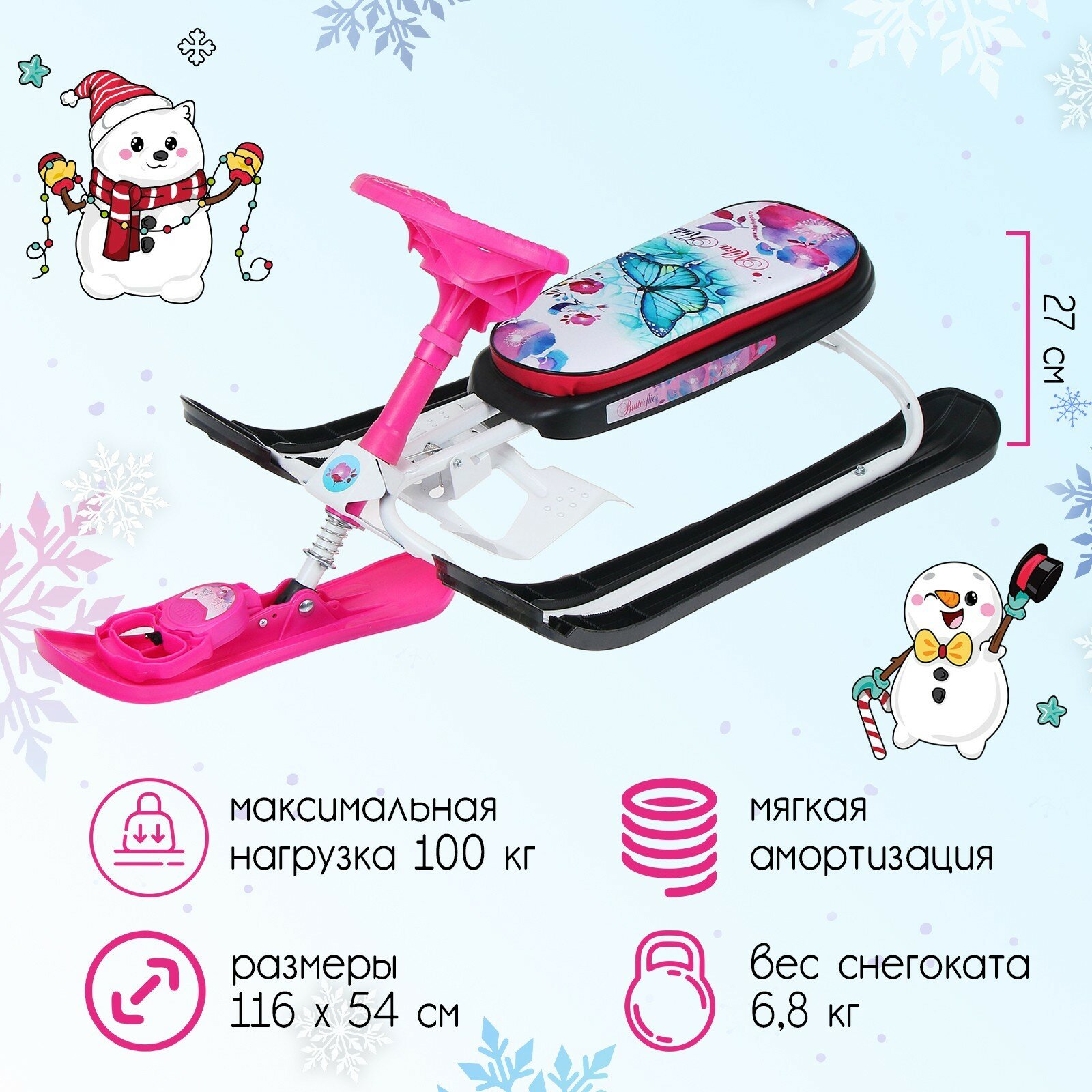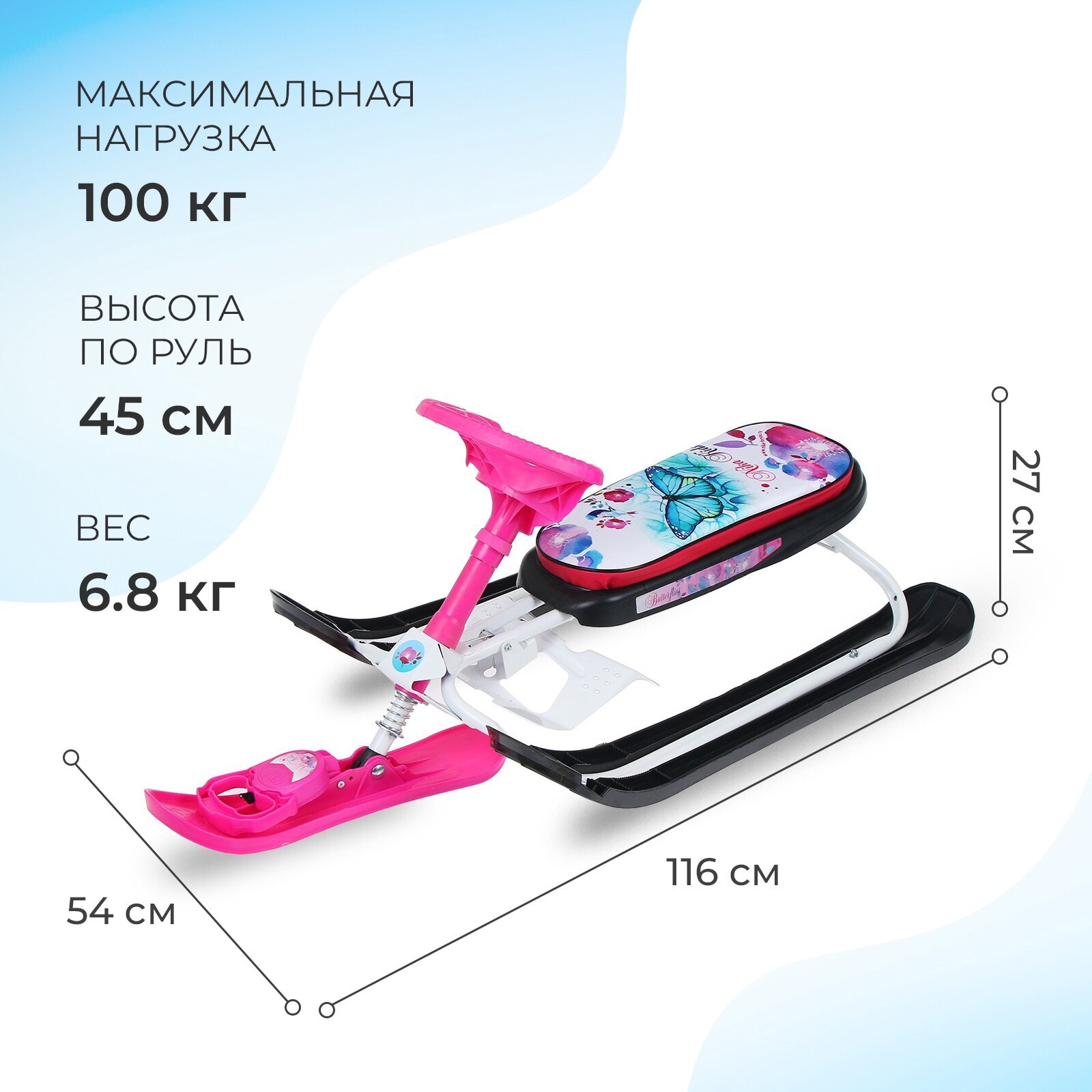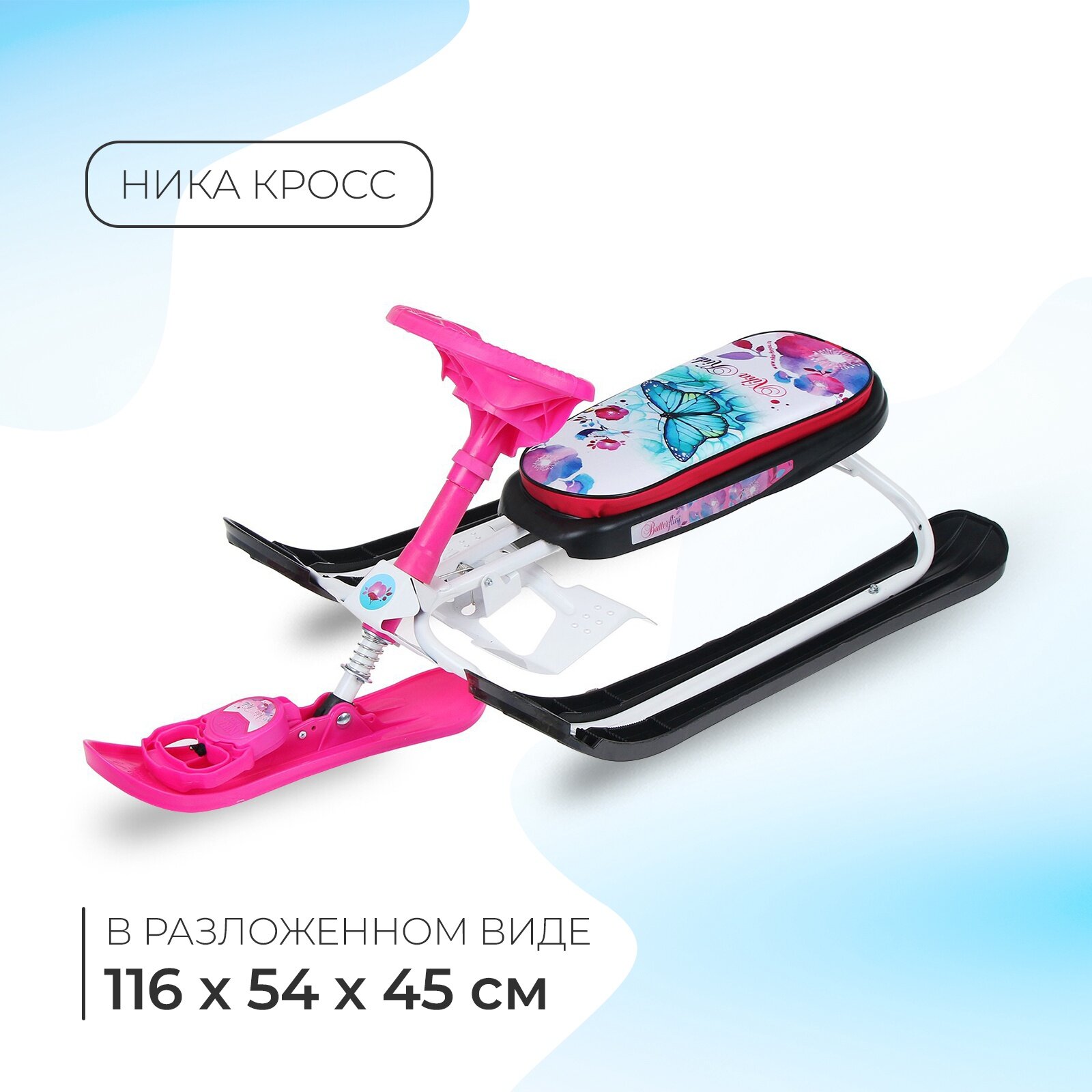 Снегокат «Ника-кросс Бабочки», СНК, цвет розовый/белый
