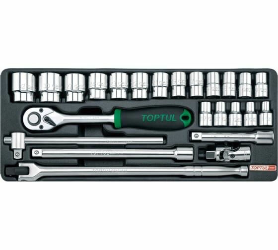 TOPTUL Набор головок и аксессуаров 1/2, 6-32 мм, 24 предмета, в ложементе GCAT2402