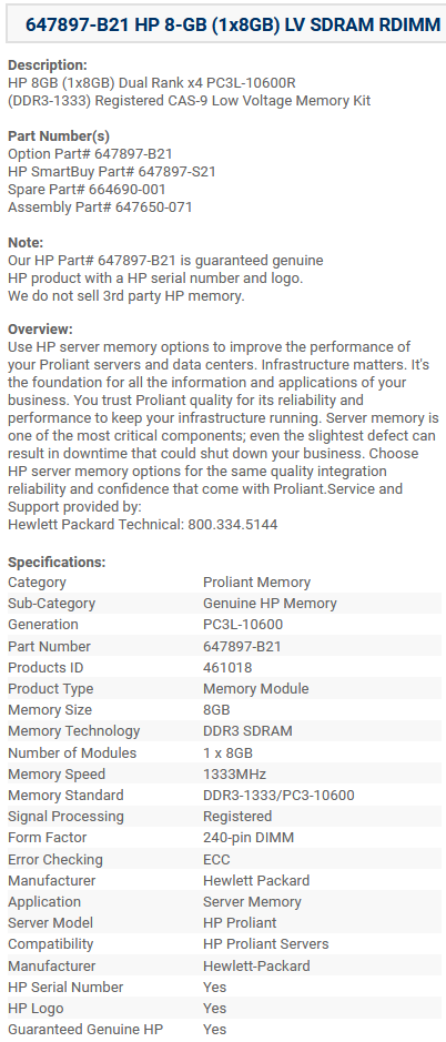 Оперативная память HP 647897-B21 8G 1333MHz DDR3 RDIMM 2Rx4 PC3L-10600R CAS-9 LV ECC Registered серверная 647897-S21 664690-001 647650-071 647897-B21