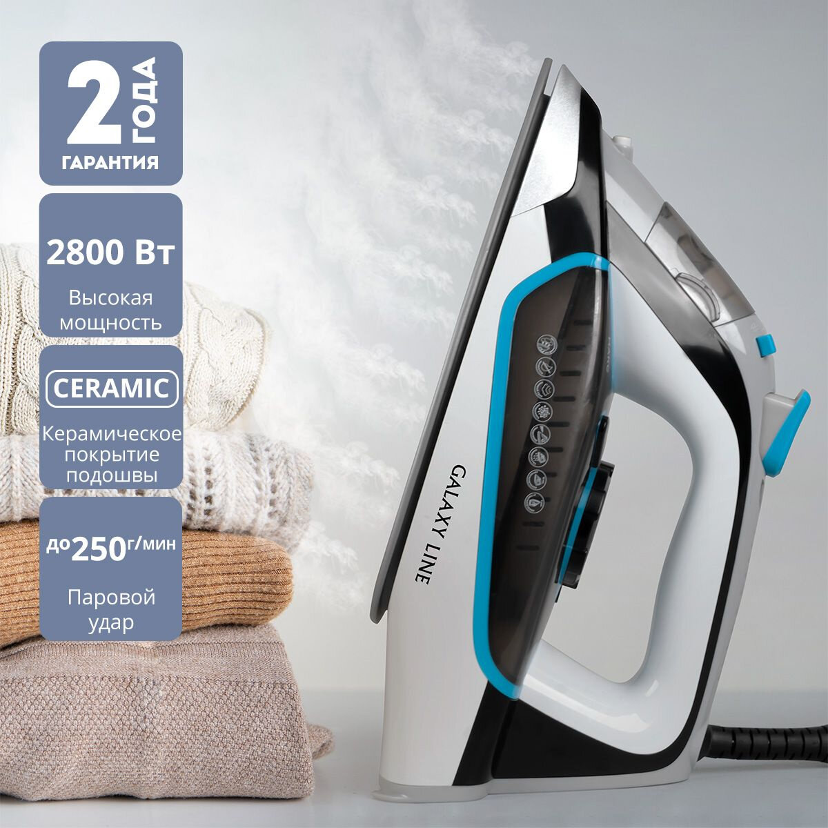 Утюг GALAXY LINE GL6107, черный/голубой/белый