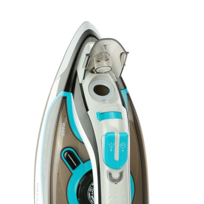 GALAXY GL 6107 Утюг 2800 Вт, керамическое покрытие подошвы, уплотнитель крышки резервуара, функции: «автоотключение», «самоочистка», «антикапля», «антинакипь», индикатор автоотключения, указатель максимального уровня воды, индикатор нагрева, вертикальное
