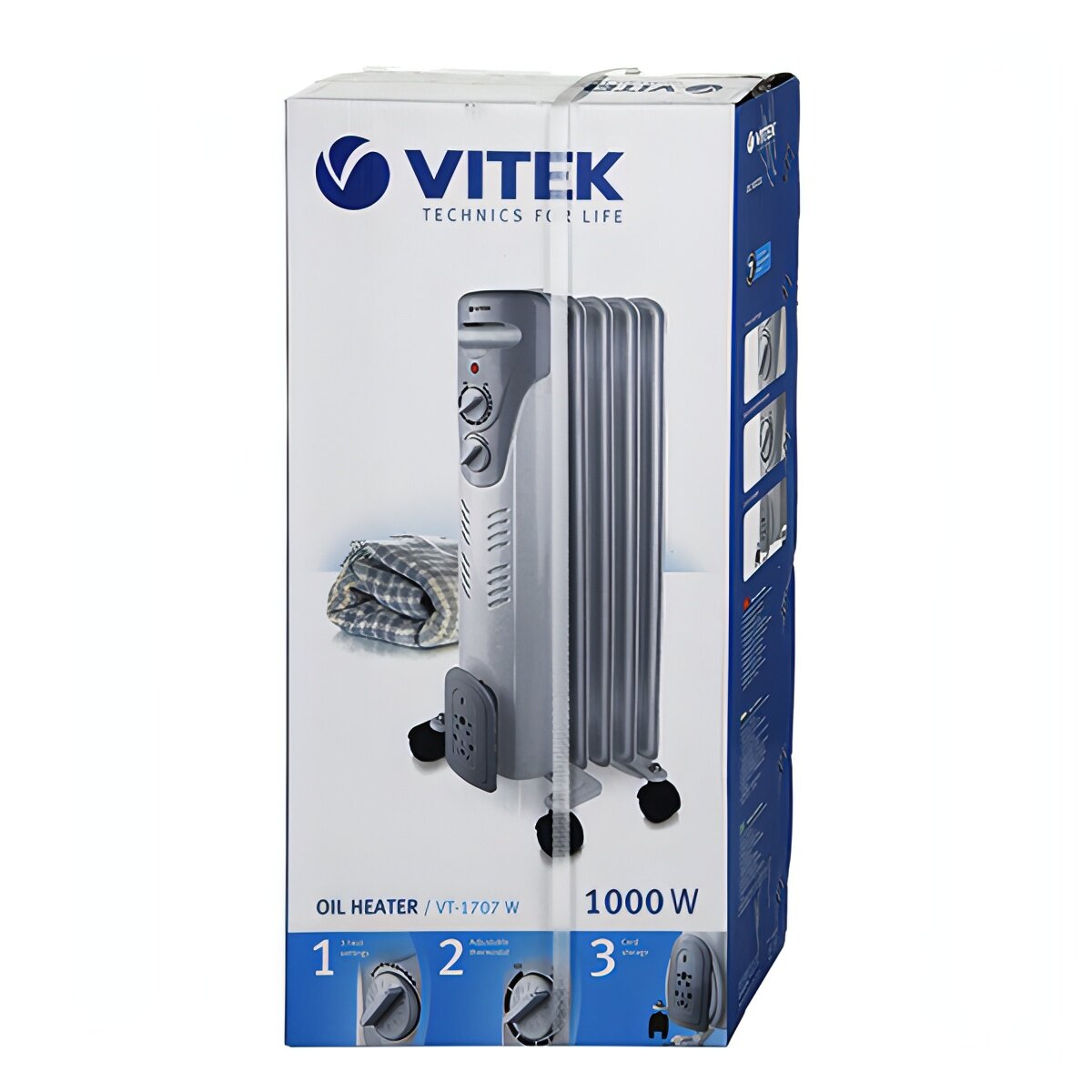 Масляный радиатор Vitek VT-1707, с терморегулятором, 1000Вт, 5 секций, 3 режима, белый [1707-vt-02]