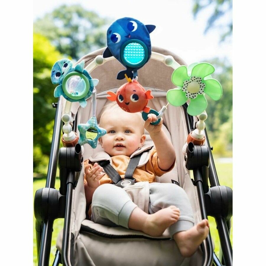 | Плюсы: | Крепится к любой коляске, шезлонгу, стульчику, ребёнку 4 месяца очень нравится. |
