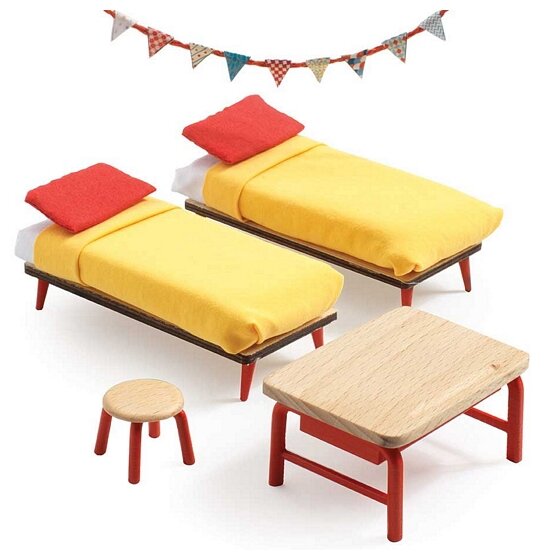 Мебель для кукольного дома Djeco Спальня для детей, красный/бежевый/желтый