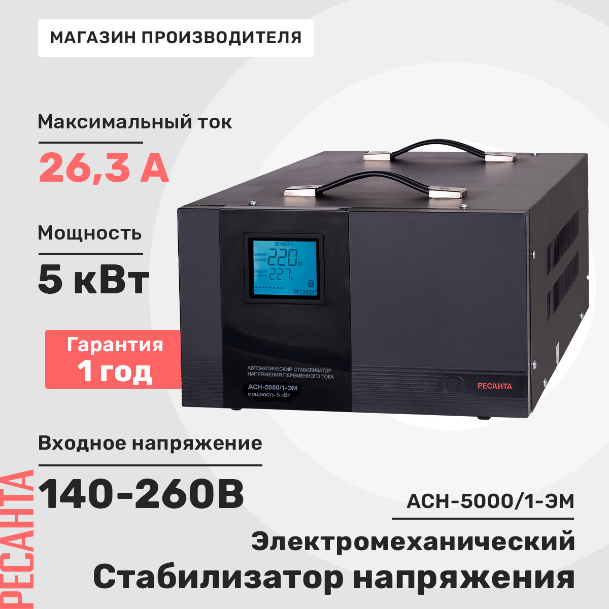 Стабилизатор напряжения однофазный РЕСАНТА ACH-5000/1-ЭМ (5 кВт)