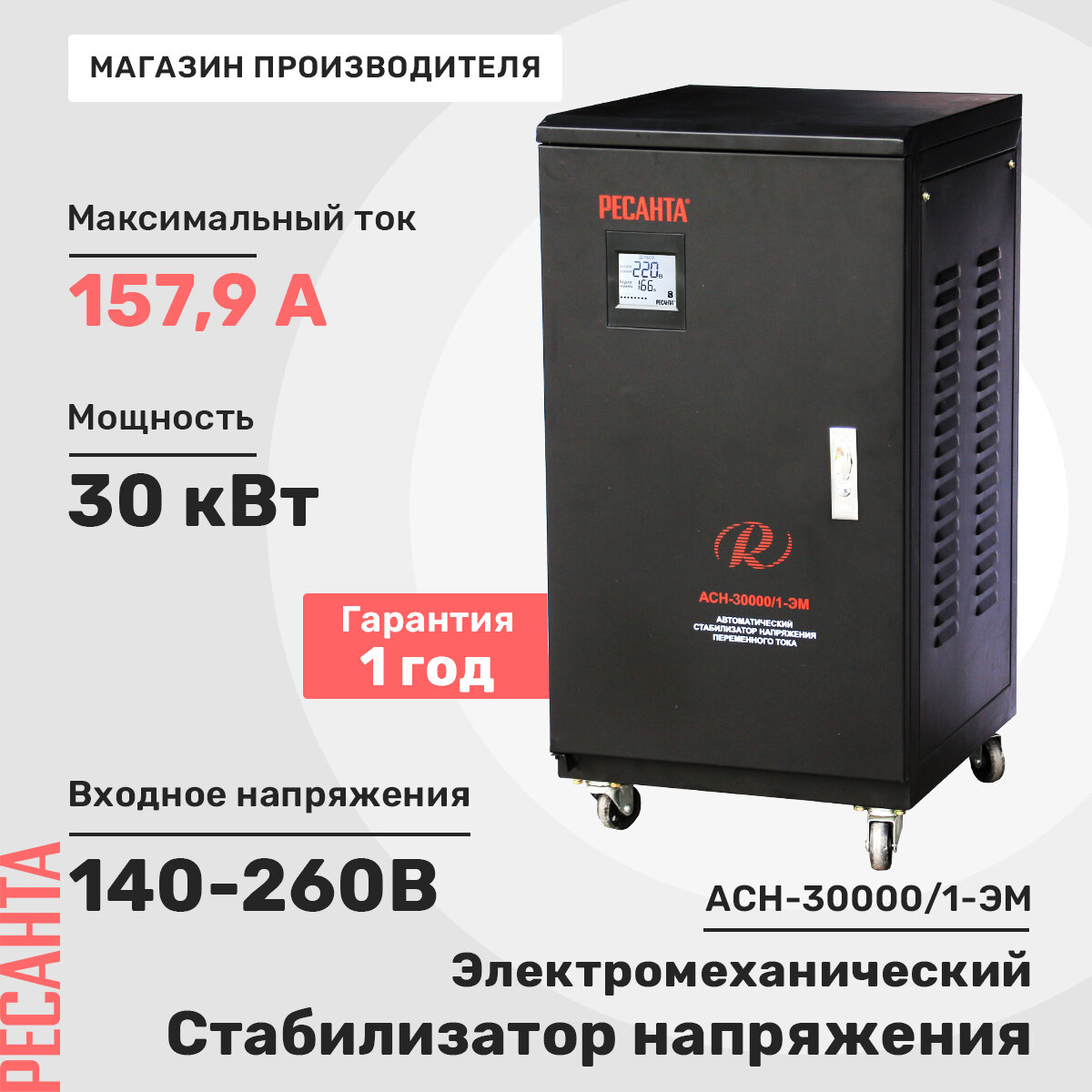 Купить Стабилизатор напряжения однофазный РЕСАНТА АСН-30000/1-ЭМ, 30 кВт, 140-260В