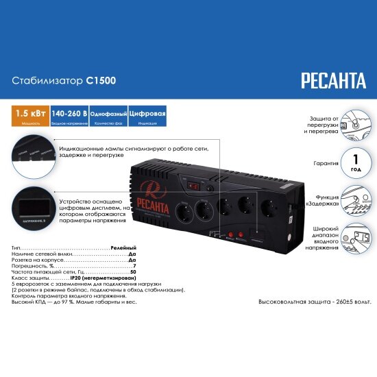 Стабилизатор С1500 Ресанта, 63/6/33