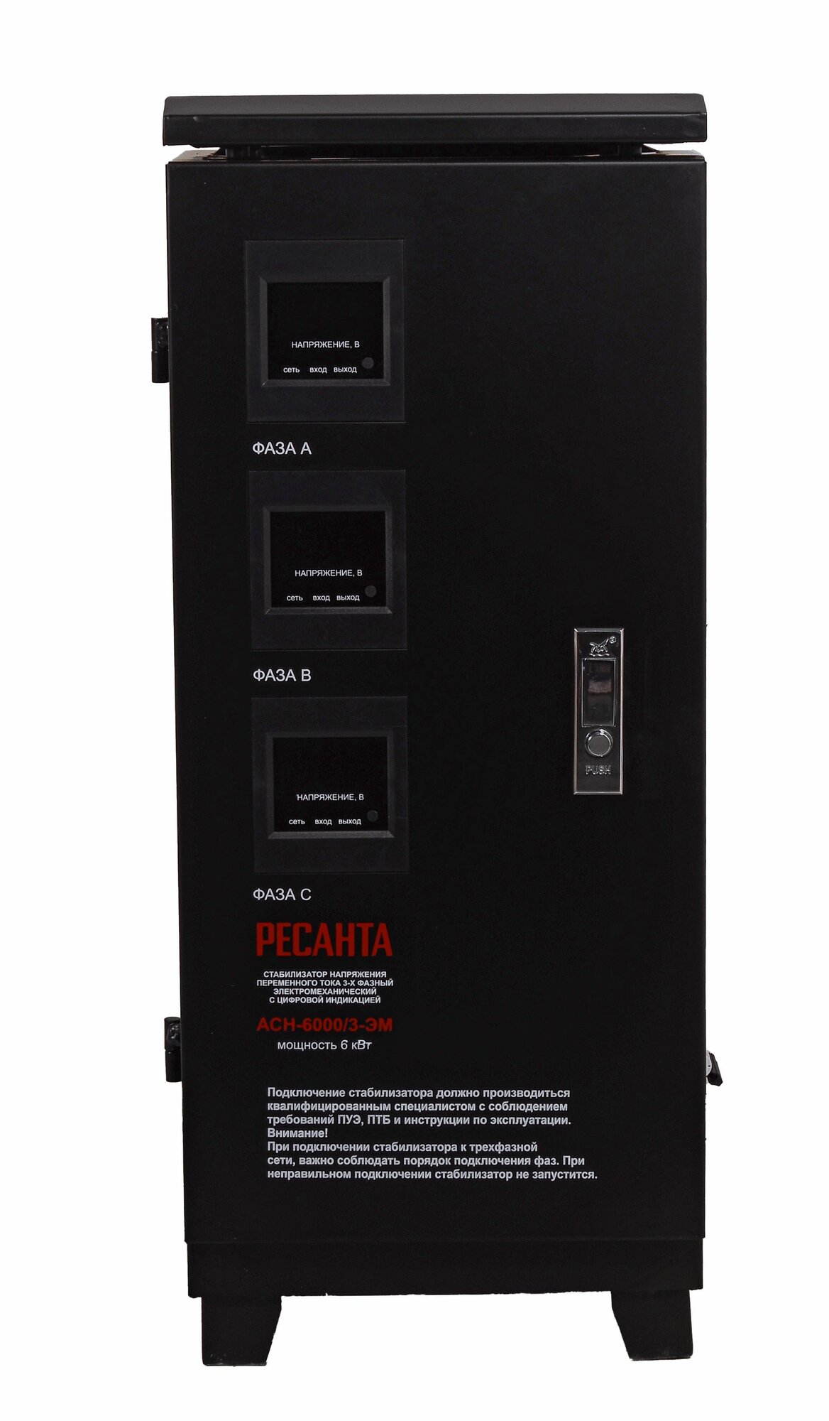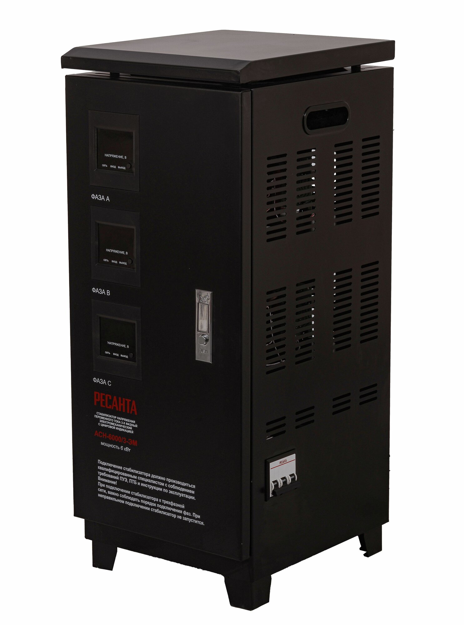 Стабилизатор напряжения РЕСАНТА ACH-6000/3-ЭМ черный .