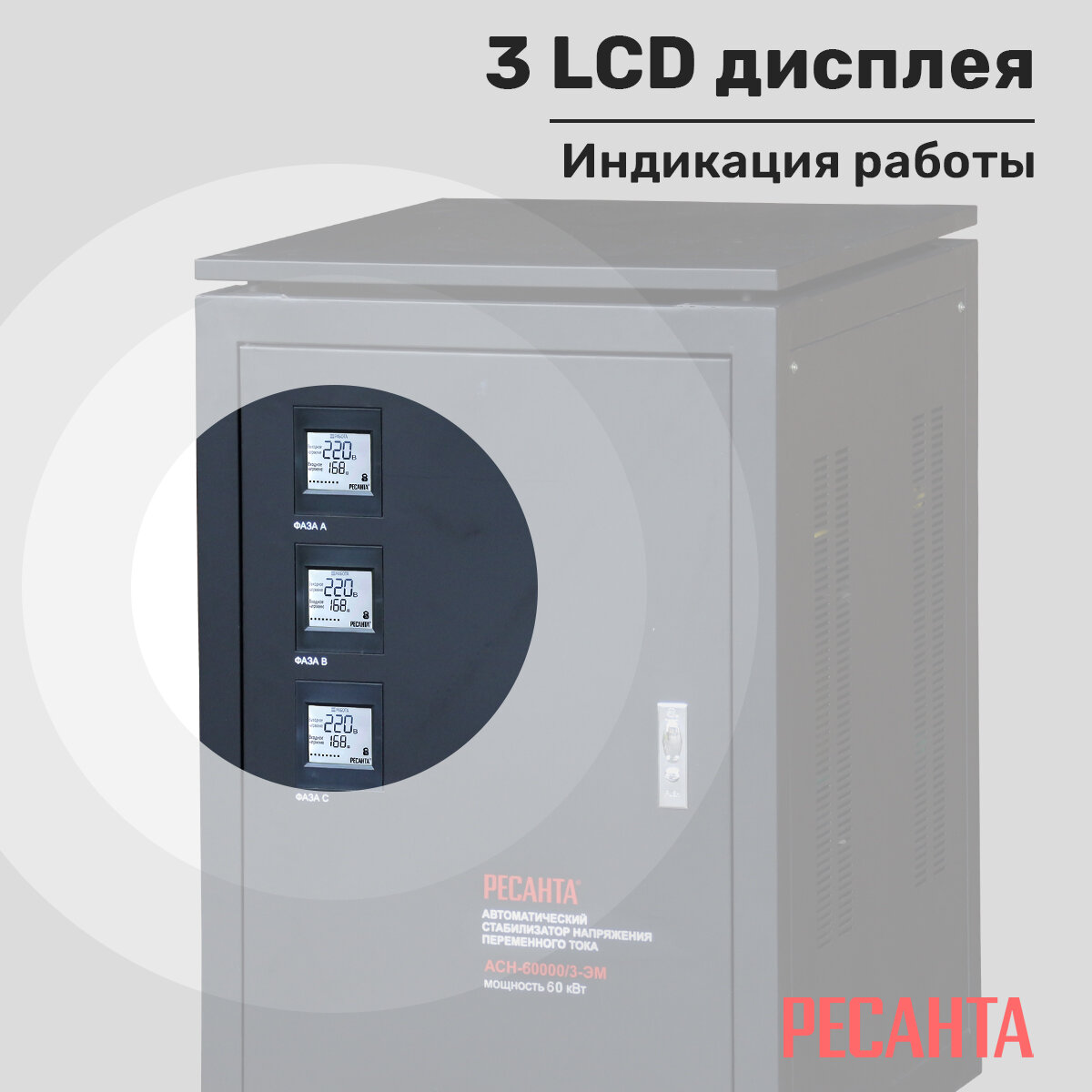 Стабилизатор напряжения Ресанта АСН-60000/3-ЭМ однофазный белый (63/4/10)