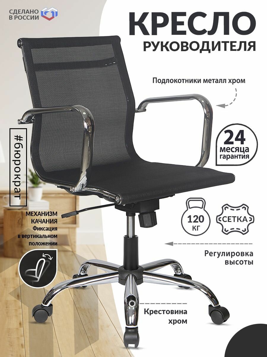 Бюрократ Кресло руководителя Бюрократ CH-993-Low черный M01 сетка низк.спин. крестовина металл хром