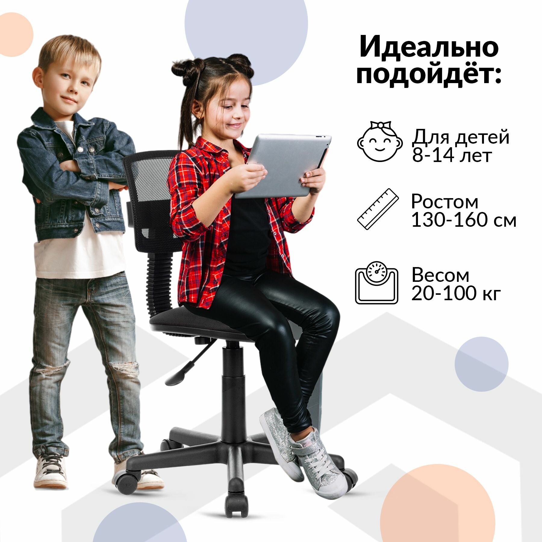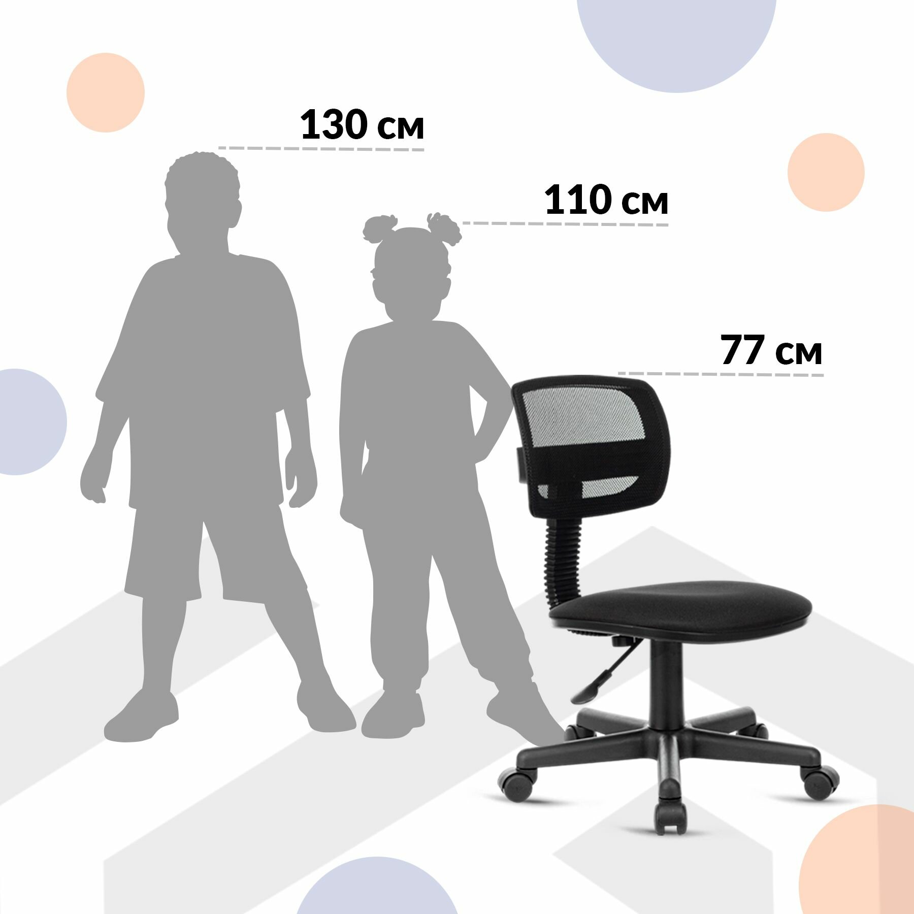 Кресло компьютерное детское Бюрократ CH-204NX, стул на колесиках без подлокотников, с низкой спинкой, ткань / сетка