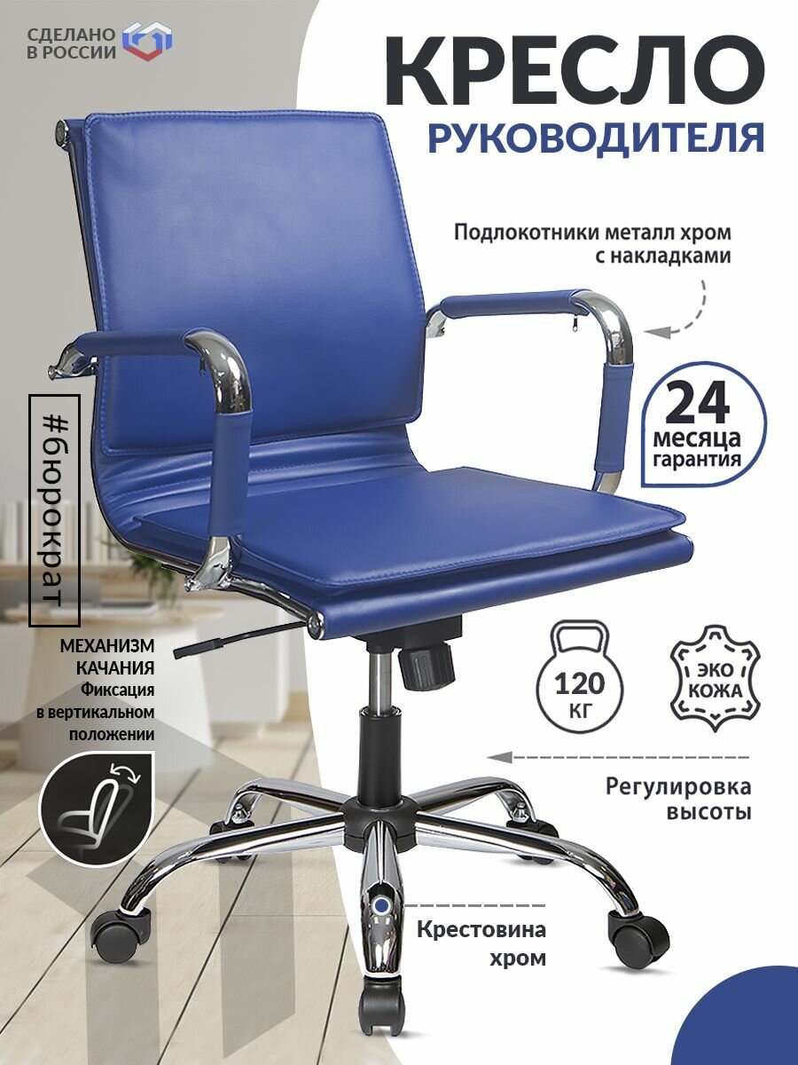 Кресло руководителя Ch-993-Low синий, экокожа / Компьютерное кресло для директора, начальника, менеджера