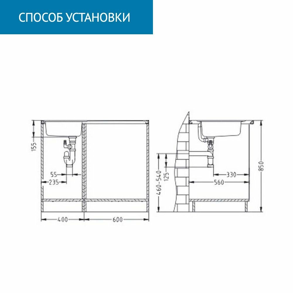 | Глубина мойки | 60 см |
