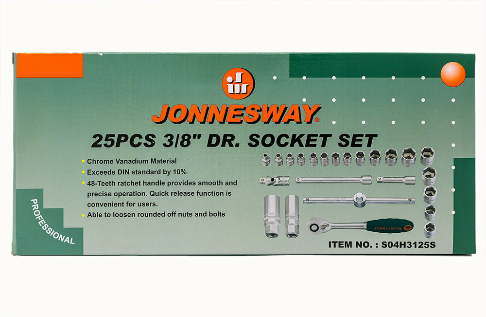 Набор головок 3/8'' 25 пр. 6 гр. 6-22 мм JW JONNESWAY S04H3125S | цена за 1 шт