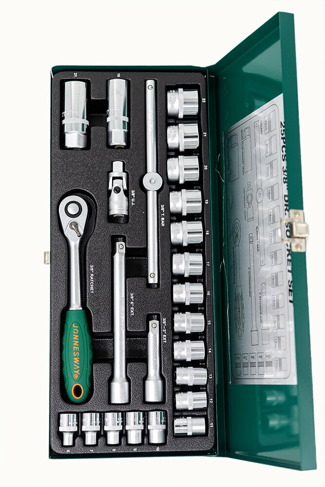 Набор головок торцевых 3/8"DR 6-22 мм, с аксессуарами, 24 предметов Jonnesway S04H3125S