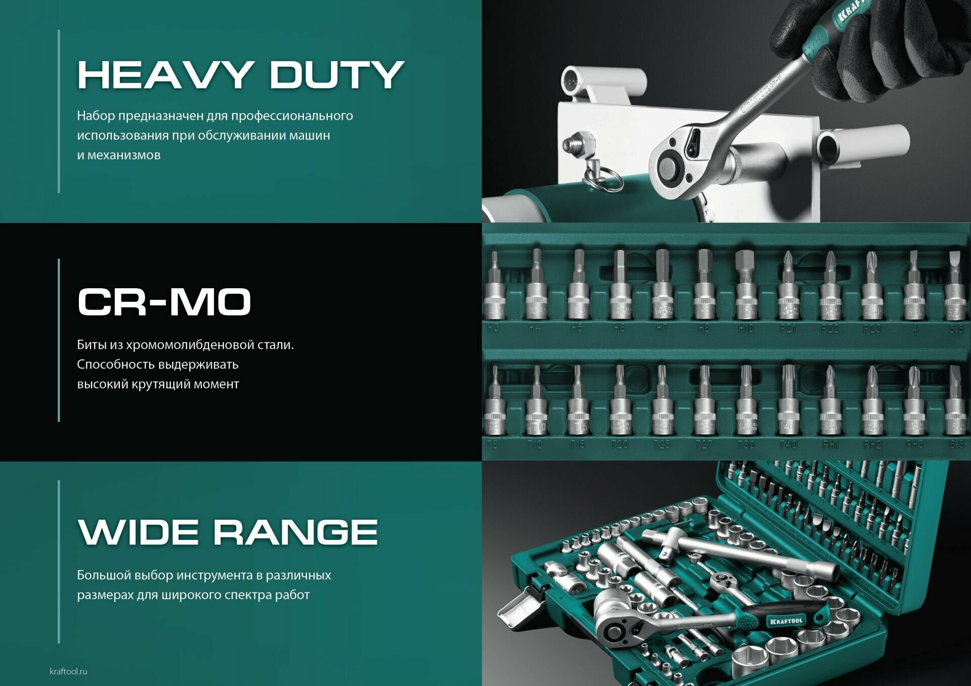 Универсальный набор инструментов KRAFTOOL GRAND-131, 131 предм., (1/2+1/4)