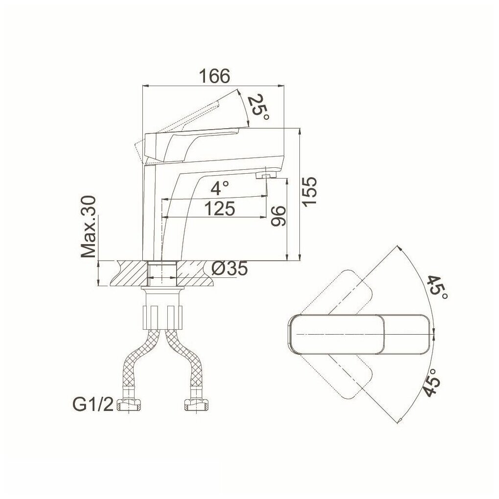 | Угол поворота рукоятки вертик. | 25 градусов |